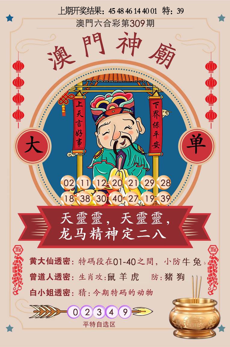 | 308期九肖 | 蛇兔龙马猴牛鸡狗猪 | 开:兔39中 |